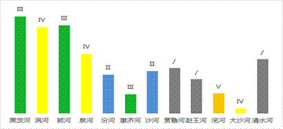 12条监控河流中,Ⅰ~Ⅲ类水质河流占5条,分别为黑茨河、颍河、汾河、惠济河、沙河。Ⅳ类水质河流占3条,为涡河、泉河、大沙河;Ⅴ类水质河流为洺河。贾鲁河、清水河、赵王河因疫情原因未参与评价。